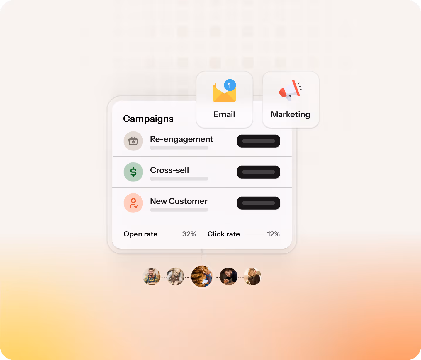 Text and e-mail campaigns in minutes. Re-engage at-risk accounts. Cross-sell what they're missing.