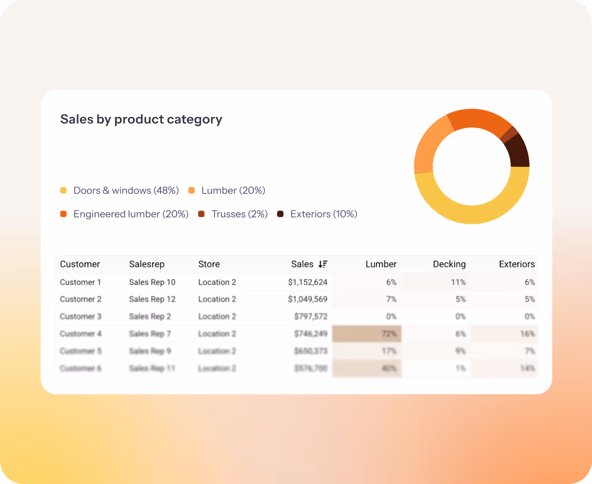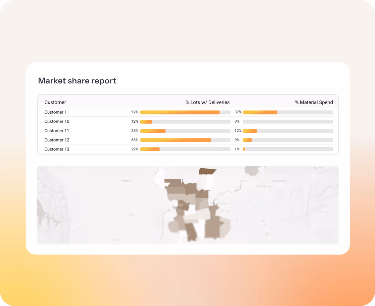 - We use AI to match your ERP and permit data. Once complete, we provide you with dashboard which show you what % of material spend you're getting with each customer.